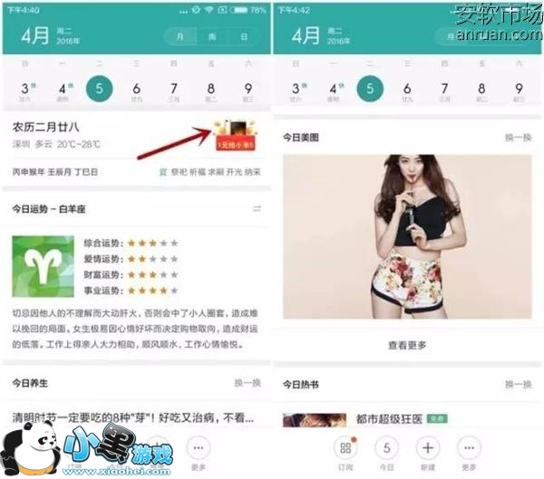 而在miu系统内的日历中,则会也会出现一些广告新闻。