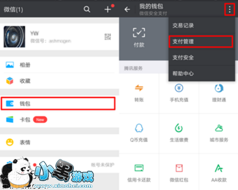 OPPO R9微信指纹支付设置教程 1、首先,下载小黑市场最新版的微信,进入微信钱包,打开右上角的支付管理,如图所示: