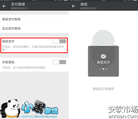 2、开启微信的指纹支付选项,然后开始录入自己的指纹,如果我们需要修改或删除指纹则需要自己的支付密码: