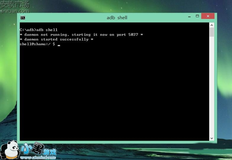 5. 回到电脑桌面,在命令控制程序中,输入 adb shell。如果出现$标志说明 adb 服务已经开启,输入 exit 退出命令。