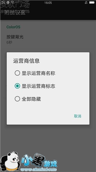 各位可以看到ColorOSSettings-R9的设置菜单中可以把背光灯分为6秒熄灭或者自动打开关闭状态,运营商标记也可以在显示运营商图标/文字上进行隐藏。