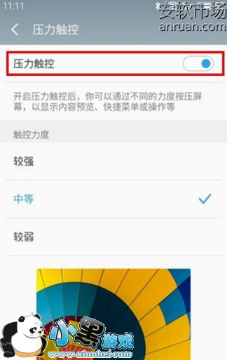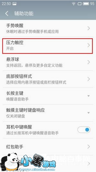 2、在辅助功能设置页面中,第二项选择就是就是【压力触控】,默认是开启,点击进入: