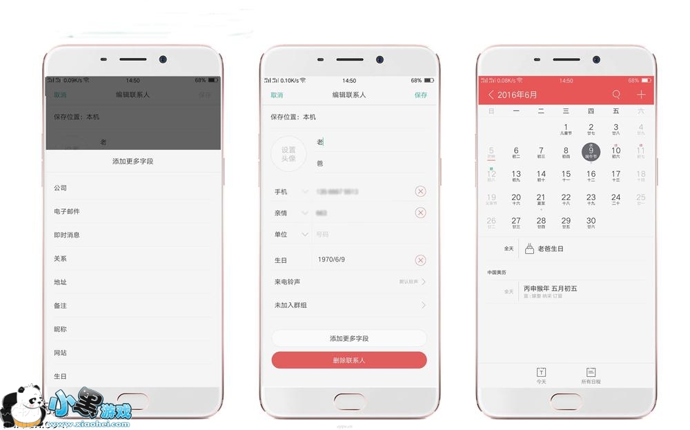 在ColorOS3.0的联系人中,可以添加更多的信息条目,比如QQ、生日、家庭住址!为「父母」或「在意的TA」添加一条「生日」纪录。系统将会自动同步至「日历」,并且创建日程,每年的那个时候都会提醒你!
