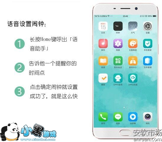 晚上睡意朦胧,不想动弹,明天却还要早起。长按R9底部中间的「Home键」打开语音助手,告诉他:“明天早上8点叫我下”!语音助手便会立即为你设置明天的闹钟。(温馨提示:老版本系统语音助手呼出为长按左侧按键,如果长按「Home键」无法呼出可以尝试)