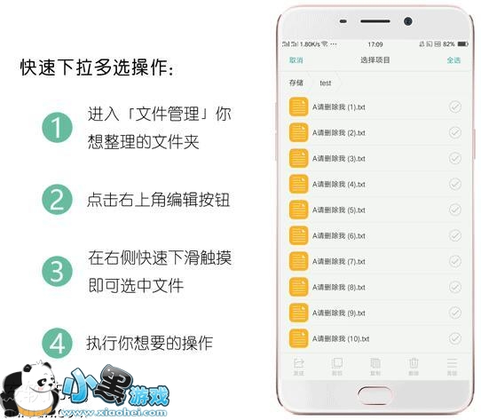 在「文件管理」中整理文件时,一次想选中多个资源,又不想全选,怎么办?点击右上角编辑按钮后手指顺着你想要的文件往下滑即可快速选中, 是不是很畅快!