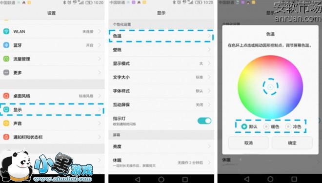 点击【设置】>【显示】>【色温】,根据喜好选择【暖色】或【冷色】。