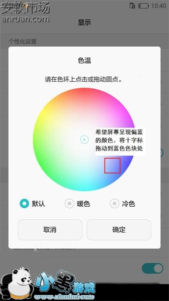 您也可以根据自己的需求直接点击喜欢的颜色或拖动色环上的十字标,调整色温。