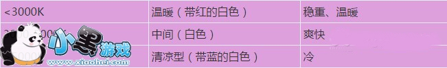 色温不同,表现出来的颜色也不同,带给人的感受也不相同: