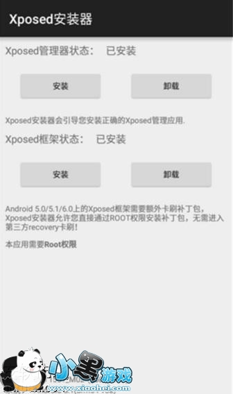 2、安装Xposed框架安装器以后启动进入,需要授权root权限,然后进入如下界面: