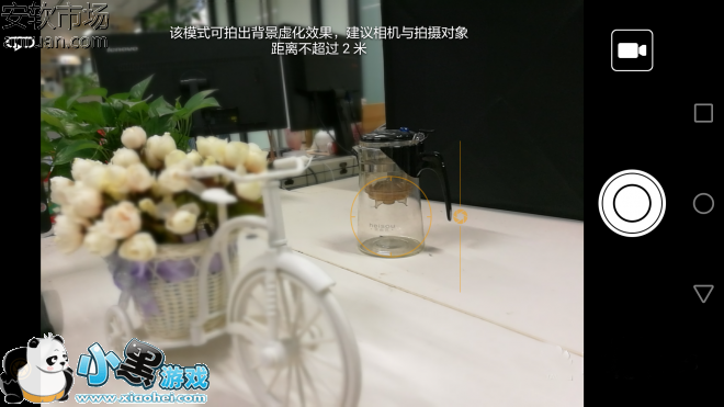 在对焦框中,用手指在自行车上轻点,自行车上就会出现一个圆形的对焦狂,相应地,图片中其它位置就会呈现模糊的状态;上下滑动右边的对焦值滑块,可以手动调节对焦狂外的模糊程度。下面,点击【拍摄】图标,来看拍出的图片效果: