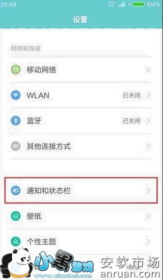 MIUI通知栏消息管理教程 1、目前MIUI系统支持通知栏管理的是MIUI6以上的系统,版本太低建议刷机升级系统,我们以红米note2为例,从手机【设置】进入【通知和状态栏】: