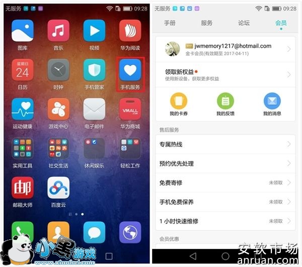 登录华为手机服务,这个主要是为了我们的售后一些VIP的体验,有专属热线,预优先处理,免费寄修,手机免费保养,1小时快速维修等VIP体验。手机主界面,找到【手机服wu】点击进入登录华为账号即可。