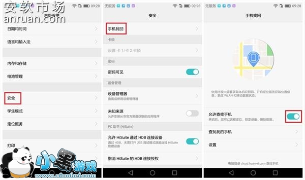 这个主要是为了防止我们手机丢失,没办法找回而设定的,入手之后你这个是必须要做的,以防万一嘛!而且,手机找回功能还支持锁屏密码找回哦,其实还是很实用的。进入手机设置界面中的【高级设置】,然后点击【安全】选项,之后开启手机找回功能就可以了。