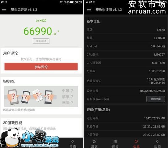 3、对于乐2手机取消了耳机接口,采用iPhone下一代产品类似的处理做法,小编这里不多做评价,是否好用等大家试试才知道。最后,让我们看看乐2手机的跑分:
