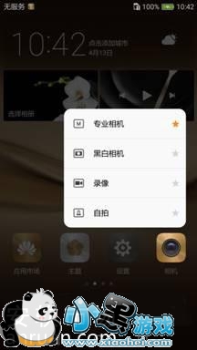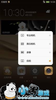 用户通过轻压“相机”图标,弹出“相机”的快捷菜单。当持续重压图标时,会打开标星项对应的快捷方式“自拍”,直接进入到“相机”应用“自拍”的界面中,用户还可以通过点击或滑动到指定的快捷方式进入到应用对应的界面中。