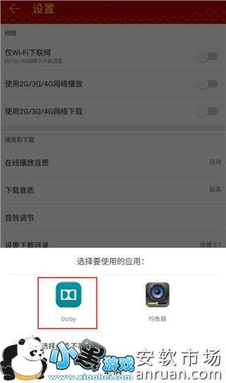 3、进入“音效调节”选项,即弹出杜比和均衡器选项,此时我们选择杜比音效并进入。(自带的均衡器可以忽略,太渣!)