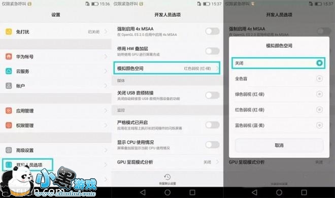 关闭【色彩校正】后仍有屏幕显示问题?看看【开发人员选项】中是否开启了【模拟颜色空间】。打开【设置】>【开发人员选项】>【模拟颜色空间】,然后关闭即可。