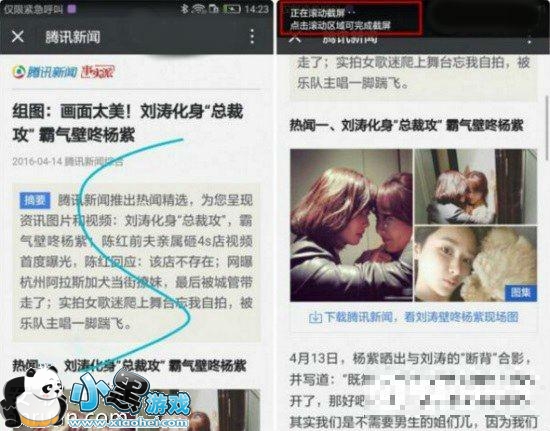 一、下拉栏快捷截图的滚动截图