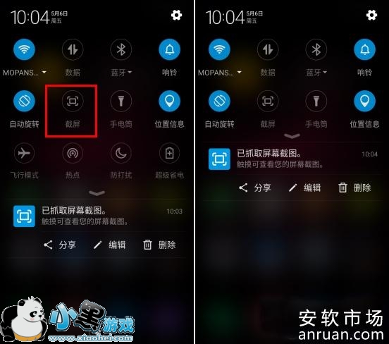 截屏之后系统会在通知栏显示已抓取屏幕截图