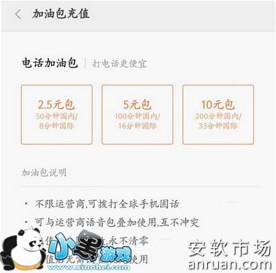 小米电话加油包是什么 小米电话加油包设置教程 1、小米电话加油包比起网络电话,回拨延迟更小,通话质量也好一些,不过占用的服务商资源和成本也稍高,我们先来简单看下电话拨打资费情况:
