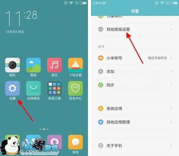 1、进入小米Max桌面界面,然后点击进入【设置】,之后在进入【其他高级设置】,如下示意图所示。