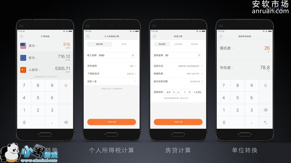 在海淘的时候,老婆/女朋友经常会问这点美金等于多少人民币,这种欧码是对应什么中国码……虽说这些问题都能在网上找到答案,但是MIUI 8的计算器,就是希望能把生活中和计算相关的一切都囊括起来,省掉繁琐的搜索步骤。