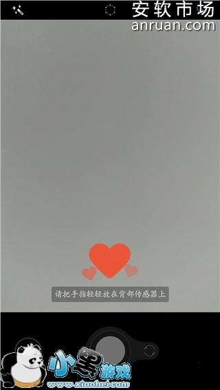 3.讲手指放在背部传感器上,拍照界面就会提示你正在测试心率,测完心率后会提示你松开手指拍照,这里温馨提示你可以把手指往下移动,这种方式能有效减少手机的晃动。