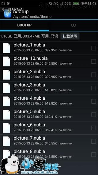 3、用RE管理器把picture_1.nubia——picture_10.nubia这10个文件复制到bootup文件夹中覆盖替换就算是完成啦。