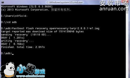 手机关机并进入fastboot模式。与电脑通过USB连接;在目录下输入fastboot flash recovery.recovery.img,回车。
