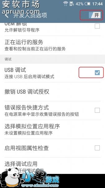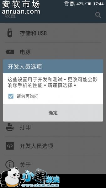 3、回到系统设置,可见“开发人员选项”了,进入打开开发人员选项和允许USB调试,结果如下: