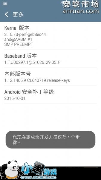 1、进入系统设置 --> 关于 --> 软件信息 --> 更多,然后出来下面最后一幅图: