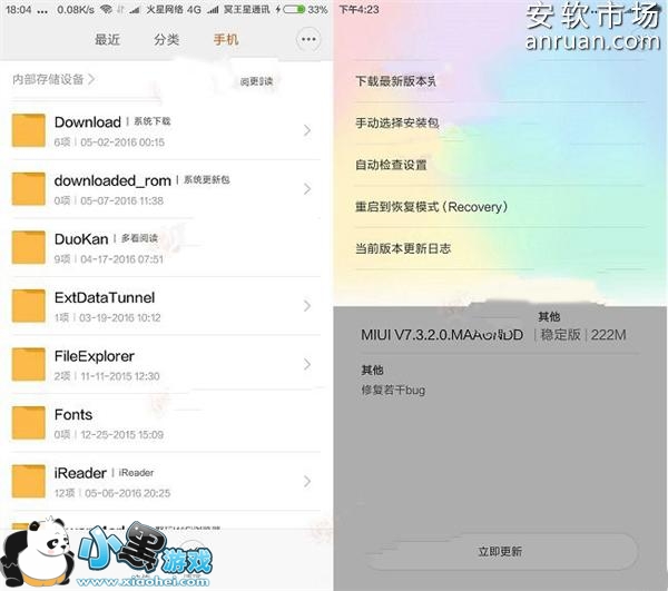 小米手机升级MIUI 8的几种方法咱们就为各位概括到这里了,当然还是那句话,升级前记得备份自己手机中的资料和数据,不然造成了损失小编可是不负责的哟。