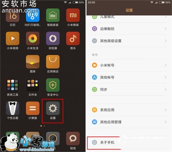 一、先在红米3S系统主界面通过点击【设置】页面,进入到设置界面,在其最下方找到【关于手机】点击进入,如图所示。