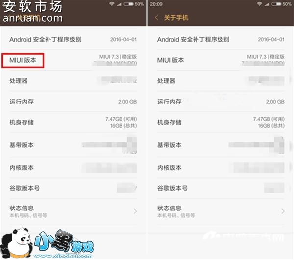 二、进入到MIUI 7系统的关于手机页面之后,我们可以在下方看到【MIUI 版本】选项,这个时候在这一栏连续点击6-7次即可打开【开发者选项】,至于怎么知道已经开启了,注意界面会提示你即将开启开发者选项模式,如图所示。