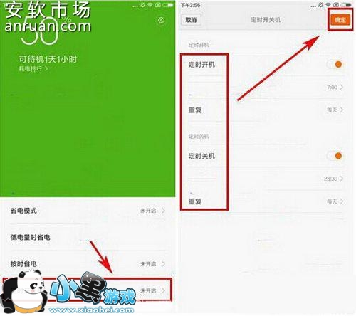 小米max定时开关机设置流程: