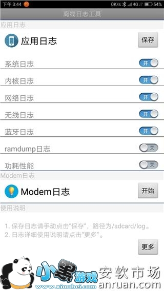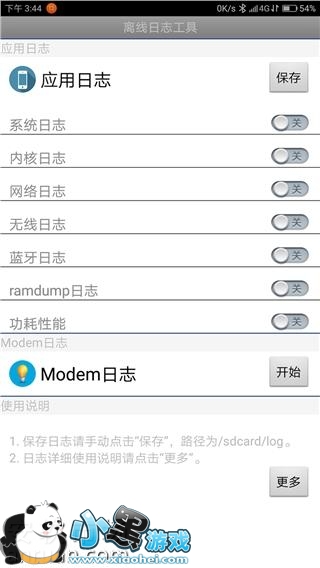 6.如果是功耗性问题,在复现前请打开功耗性能选项,如果是通话方面的问题,请点击Modem按钮后开始通话,然后回头再点击保存,保存日志!