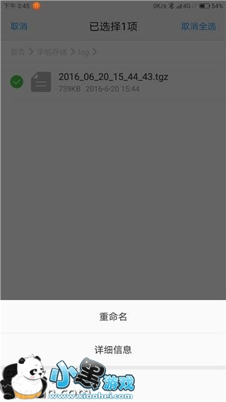 5.根据文件时间找到log压缩文件夹,然后长按对应压缩文件,在弹出的对话框内选择重命名,命名一定要清楚,比如“淘宝停运”或者其他的等等,请大家务必配合。录制完成的log及详细问题描述,请发送邮件至mailto:gongzq@lenovo.com,如果log文件比较大,请上传至百度云盘后,复制链接联通详细问题描述,发送至以上邮箱!