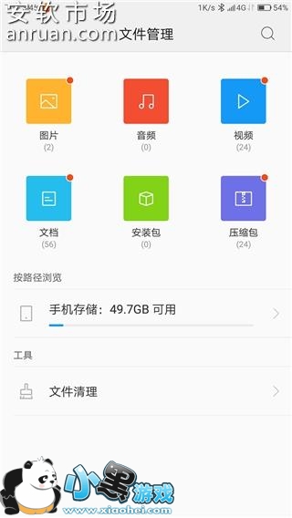 4.进入工具文件夹,找到文件管理器,然后点击手机存储,找到log文件夹。