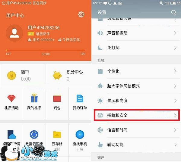 三、注册好账号或者登录后,再次进入魅蓝3S的「设置」-「指纹和安全」设置,如下图所示。