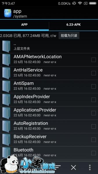 接下来你想删system/app 还是system/pri-app ? 就看你的意思了.“软件商店”和“系统更新”应该还是不能精简的把,会卡米(MIUI6 MIUI7都是如此),3S的没亲测。
