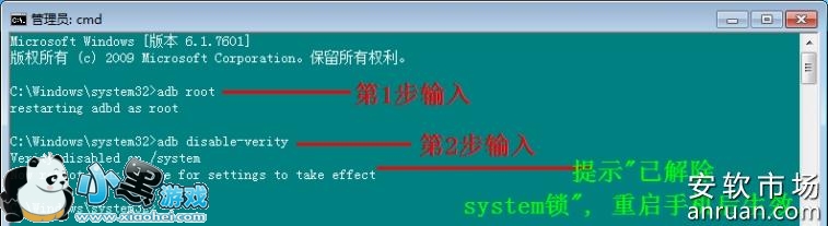 先输入adb root(回车)然后再输入adb disable-verity(回车)即下图所示:
