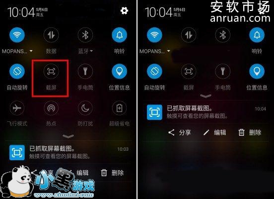 360手机N4S截图方法二:下拉快捷菜单截屏