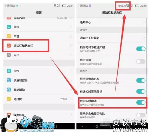 进入设置--通知栏和状态栏--显示实时网速,简单方便实用。