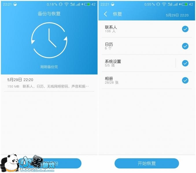 恢复我们可以分两块进行,首先是常规数据的恢复,只需在开机引导界面登录 Flyme 账号就可以自动从云端将联系人、短信、通话记录等;接着就是最重要的应用数据及桌面布局恢复,很简单的一步,将你原来的手机备份好的文件夹 backup 移动拷贝到你的新手机文件管理根目录,接着打开系统备份界面就会看到你的备份记录,点击备份记录开始恢复即可。