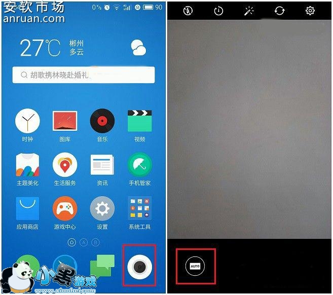 一,首先打开魅族手机的相机,然后再在相机界面底部左下角的「AUTO」,如下示意图。