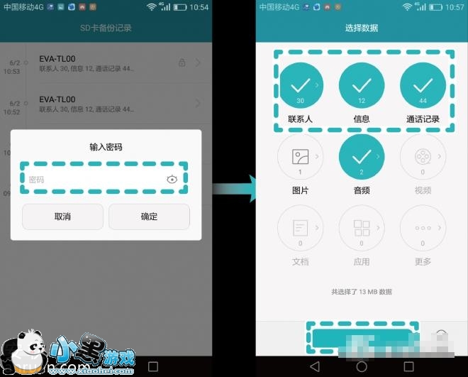 选择要备份的数据,点击【开始备份】,您可以根据需要设置密码。稍等片刻,待备份完成后,您就可以看到刚才备份的数据了,有没有?