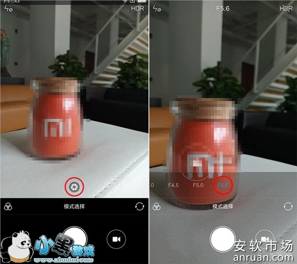 打开红米Pro相机,选择取景窗中的光圈按钮,即可弹出光圈选择选项