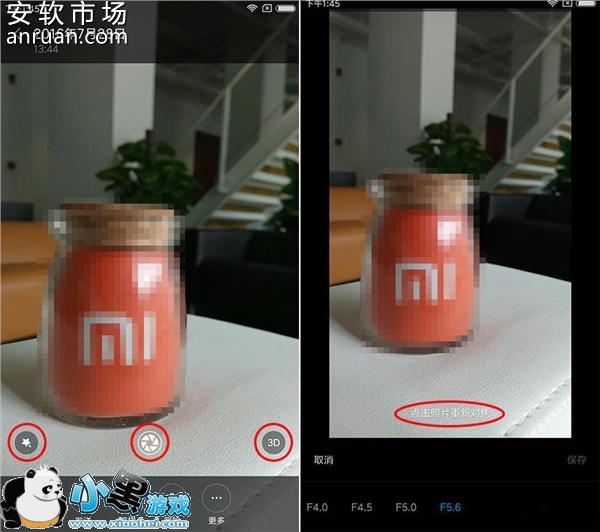 左右滑动光圈选择栏,调整光圈大小,选择对焦点,画面也会实时随之变化。可以看出随时光圈有大变小(F0.95-F5.6)景深越来越大,背景虚化效果越来越小。按下快门完成拍摄。