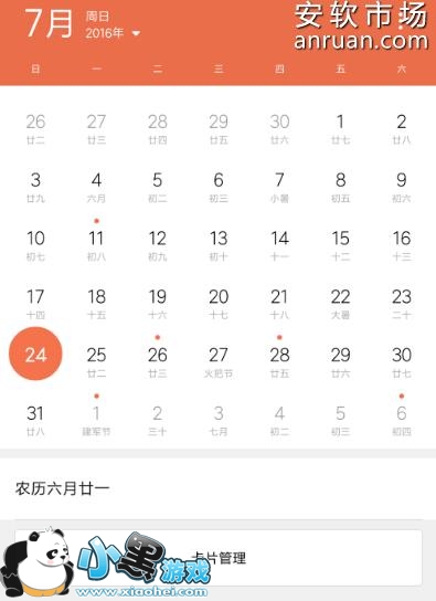 2、下滑日历界面到最底部,可以看到有一个“卡片管理”的功能选项,点击该功能进入,如下图