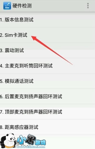 4、从打开的“硬件检测”界面中,找到“SIM卡检测”项点击即可进入小米手机SIM卡检测界面。